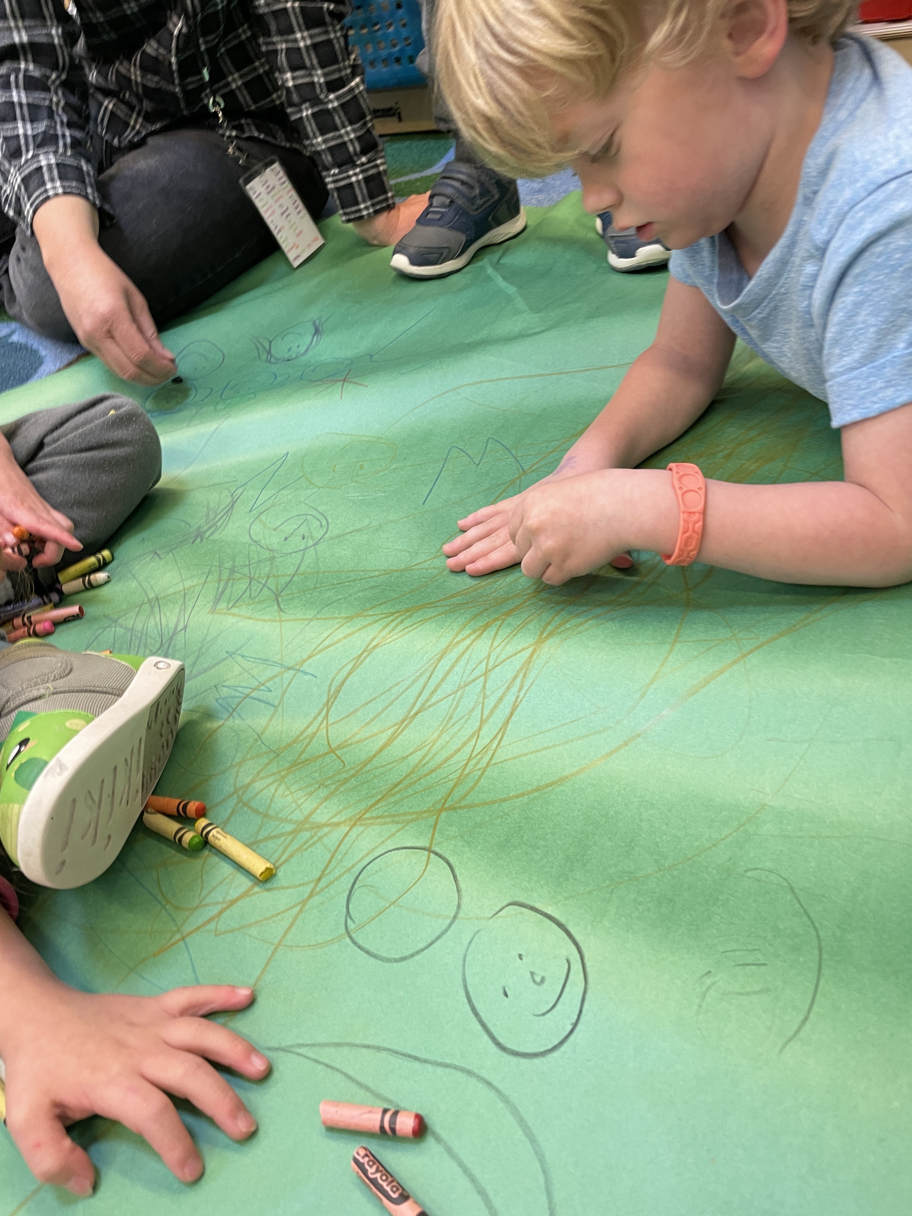 Then, Miss Carrie brought out a big piece of paper and crayons. We could draw our families and talk about them. We talked about who lived at our house. Some families had grandparents living with them. Some families had nannies. Some families had pets. Some people had uncles or aunts living with them.